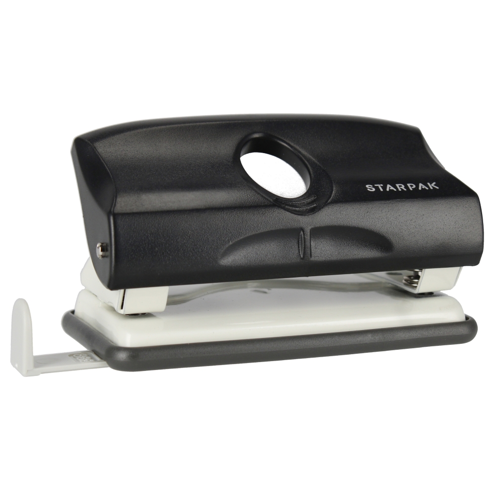 Výhody produktu: Praktický děrovač STARPAK, ideální pro domácnosti a malé kanceláře. Moderní vzhled přitahuje pozornost. Pohodlí při vyprazdňování zařízení zajišťuje protiskluzová základna, která se otevírá do poloviny.Malá děrovačka má vzdálenost mezi otvory 80 mm a průměr otvoru 5,5 mm. Dokáže děrovat otvory do 10 listů papíru najednou. Baleno v kartonové krabici. Kancelářské zařízení je vyrobeno z plastu a kovu. Děrovačka v černé barvě. Rozměry/hmotnost: rozměry výrobku délka x výška x hloubka. cm 10x4x6, hmotnost výrobku kg. 0,11 kg. Rozměry balení: délka x výška x hloubka cm 14x7x4, hmotnost balíku kg. 0,13 kg. Výrobek není vhodný pro děti do 3 let. 144 ks v krabici.
