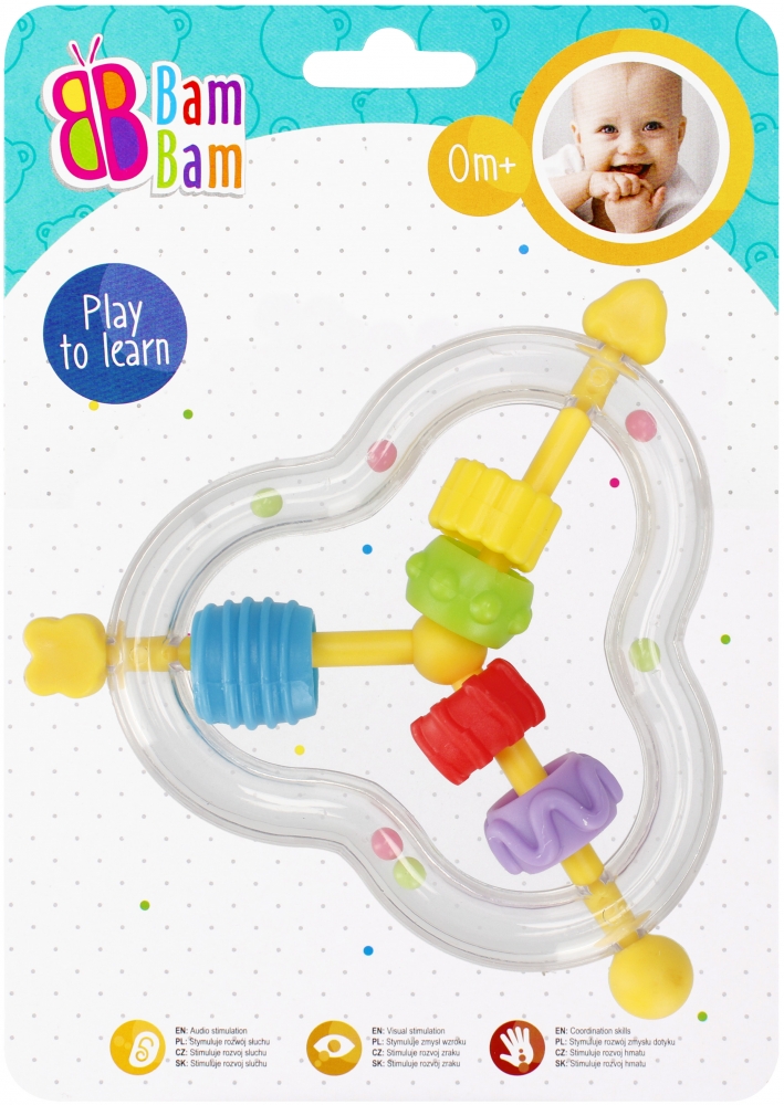 TROJÚHELNÍKOVÉ chrastítko určené pro miminka od narození. Trojúhelníkový tvar s intenzivními barvami a různými texturami materiálů. Má interaktivní prvky, které povzbuzují batole ke hře, stimulují rozvoj jeho smyslů pro zrak, sluch a motoriku. Rukojeť zaručuje snadné uchopení a držení chrastítka v malých ručičkách. Hračka podporuje rozvoj smyslů, sluchu, hmatu i manuální a jemné motoriky. Rozměry/hmotnost/baterie: rozměry výrobku délka x výška x hloubka cm: 13x13x2, rozměry balení: délka x výška x hloubka. cm: 15x20x2, hmotnost výrobku bez obalu kg: 0,05 kg, hmotnost výrobku v obalu kg: 0,07 kg, nevyžaduje baterie. Chrastítko je určeno pro děti ve věku: 0+m. Hračka je balena v blistru. V hromadném kartonu po 24 kusech.
