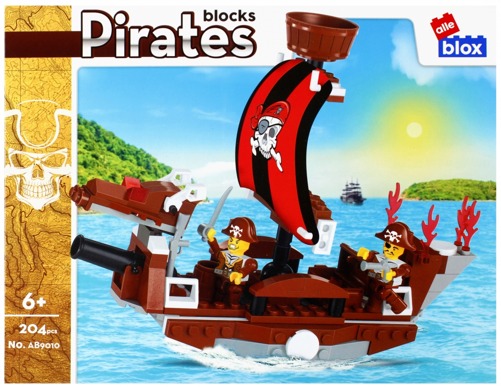 Přednosti produktu: kostky zvyšují duševní výkonnost, která se promítá do kreativity, stimulují fantazii a mají pozitivní vliv na vývoj dítěte, konstrukce mají pohyblivé prvky, sada obsahuje figurky pirátů. Novinkou v naší nabídce je stavebnice ALLEBLOX. Umožňují stavět různé stavby, stavby a vozidla, jsou dokonalou zábavou pro malé i velké konstruktéry.Spojují se s dalšími oblíbenými stavebnicemi, jsou lehké a snadno se montují. Obsah sady: 204 stavebnic, návod k sestavení. Všechny prvky z měkkého plastu. Rozměry/hmotnost/baterie: rozměry výrobku délka x výška x hloubka cm: 22x17x9, rozměry balení: délka x výška x hloubka. cm: 34x27x6, hmotnost produktu bez obalu kg: 0,14 kg, hmotnost produktu v balení kg: 0,36 kg, nevyžadují baterie. Výrobek je určen pro děti ve věku: 6+let. Baleno v kartonové krabici. V hromadném kartonu po 18 kusech.