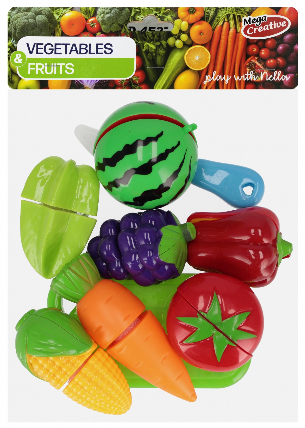 Výhody produktu: Díky sadě MEGA CREATIVE se vaše dítě naučí různé druhy ovoce a zeleniny. Společná zábava jistě vyústí ve skvělé chvíle při společném vaření lahůdek v kuchyni Sada obsahuje: prkénko, nůž a 7 různých druhů ovoce a zeleniny - různé v závislosti na sadě. Všechno ovoce a zelenina je rozděleno na dvě části, spojené dohromady suchým zipem, který napodobuje proces jejich krájení. Výrobky z plastu. Určeno pro děti ve věku: 3. Rozměry balení: délka x výška x hloubka cm: 22x26x6 Hmotnost balení kg. 0,18 kg Baleno v sáčku s ramínkem V krabici, 48/96 ks.