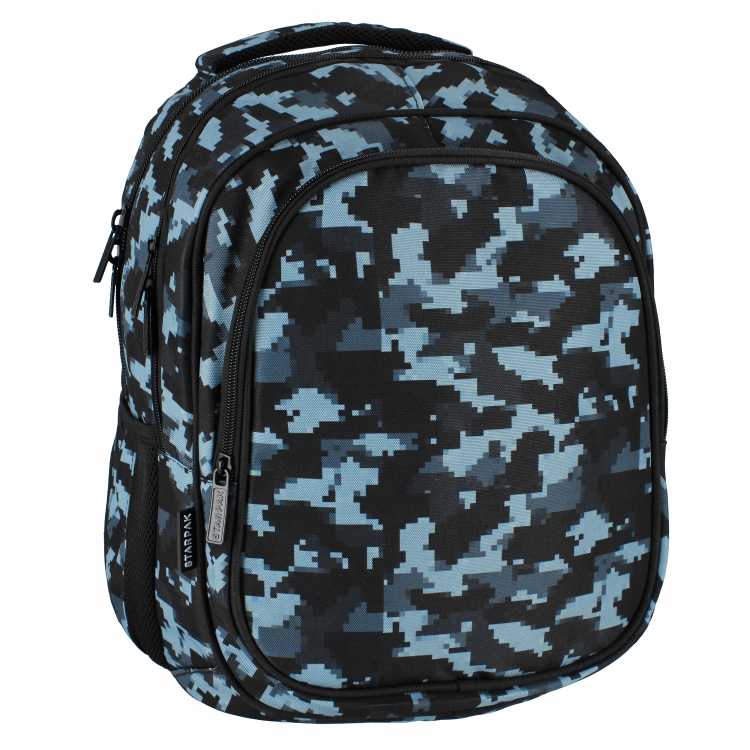 Přednosti produktu: batoh se skládá z 1 velké komory a 2 prostorných předních kapes, uvnitř přihrádek jsou organizéry, 2 boční vyztužené síťované kapsy na láhev s pitím, odolné zipy, batoh je vyroben z pevného 600D polyesterového materiálu speciálně potaženého nepromokavou vrstvou vrstva , ergonomická záda a ramenní popruhy, záda s ventilačním systémem pro větší pohodlí, silné, měkké popruhy chrání ramena, nastavitelné popruhy umožňují přizpůsobit batoh vaší výšce a typu postavy, vyztužená rukojeť uvnitř, umožňující zavěšení batohu na ramínku nebo jej nosit pohodlně v ruce. Batoh v černé, šedé a grafitové barvě. Pohodlný a funkční školní batoh STARPAK s mladistvou grafikou ze série Moro. Používání takového batohu je čistá radost. Podívejte se také na další produkty STARPAK určené mladým lidem Vyrobeno z odolného materiálu. Batoh je textilní výrobek. Určeno pro děti ve věku: 3. Rozměry produktu: výška x šířka x hloubka. cm: 43x35x21, hmotnost výrobku kg: 0,80 kg. Batoh balený ve fólii. Balení v krabičce po 12 kusech.