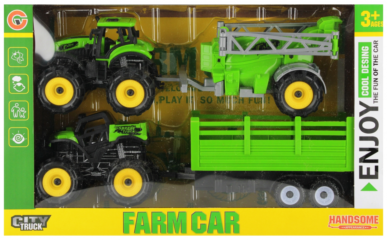 Výhody produktu: traktor má funkci vytažení, takže po tlačení vozidla dopředu pokračuji v jízdě sám. Vozidlo má odnímatelný zemědělský stroj a přívěs, stroj má pohyblivé části. Traktor od MEGA CREATIVE je návrhem na mnoho hodin skvělé zábavy Díky této hračce se vaše dítě seznámí s prací farmáře. Obsah sady: 1 x traktor, 1 x terénní přívěs, zemědělský stroj. Celé je to z plastu. Rozměry/hmotnost/baterie: rozměry výrobku délka x výška x hloubka cm: traktor - 10x8x8, terénní vůz - 10x8x8, přívěs - 18x8x7, zemědělský stroj - 15x8x7, rozměry balení: délka x výška x hloubka. cm: 31x20x8, hmotnost produktu kg: 0,23 kg, hmotnost produktu v balení kg: 0,37 kg, nevyžaduje baterie. Sada je určena pro děti ve věku: 3. Baleno v krabici s okénkem. V hromadném kartonu po 30 kusech.