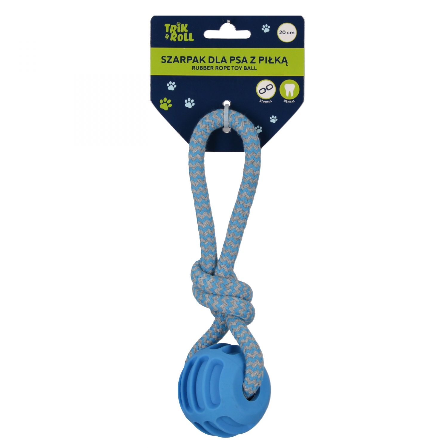 Výhody produktu: Tahadlo pro psy TRIK&ROLL s míčkem je hračka určená pro aktivní hru, jako je přetahování, aportování nebo výcvik poslušnosti. Je to ideální hračka pro psy, kteří rádi přetahují a kousají a zároveň potřebují bezpečný a měkký materiál na zuby. Hračka je ideální pro přetahování, aportování a jako kousací hračka. Tahadlo je zakončeno gumovým míčkem. Hračka je vyrobena z bavlněné šňůrky zakončené míčkem. Tahadlo je šedomodré barvy. Rozměry/hmotnost: rozměry výrobku délka cm: 20 cm, hmotnost výrobku kg: 0,08 kg. Hračka je balena v europřívěsku. Doporučeno pro všechna plemena psů.
