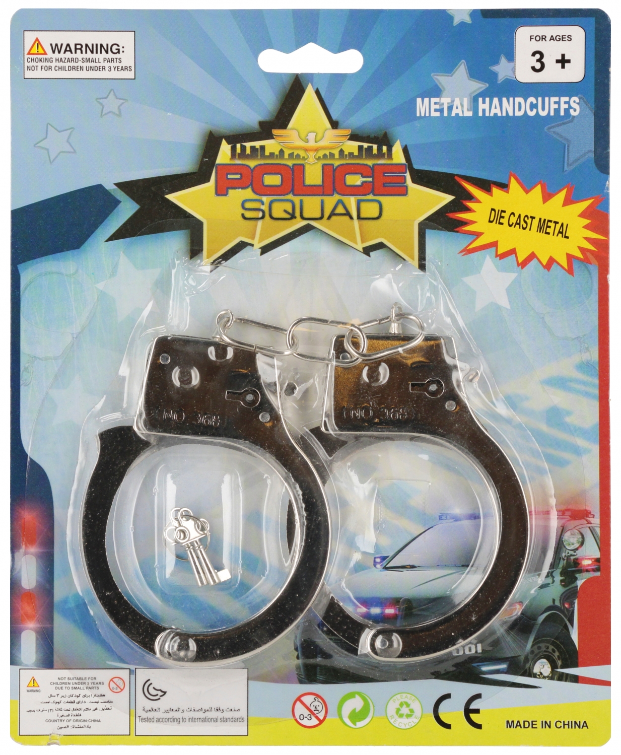 Výhody produktu: rozvíjení představivosti dítěte, učení se rozlišovat dobro od zla. Zastavte policejní střelbu S policejními pouty MEGA CREATIVE můžete chytit každého zločince a spoutat mu obsah sady: pouta, klíče. Výrobky z kovu. Rozměry/hmotnost/baterie: rozměry výrobku délka x výška x hloubka cm: 7x9x2, rozměry balení: délka x výška x hloubka. cm: 16x21x1, hmotnost produktu bez obalu kg: 0,05 kg, hmotnost produktu v balení kg: 0,07 kg, nevyžaduje baterie. Sada je určena pro děti ve věku: 3. Baleno na blistru. V hromadném kartonu po 72 kusech.